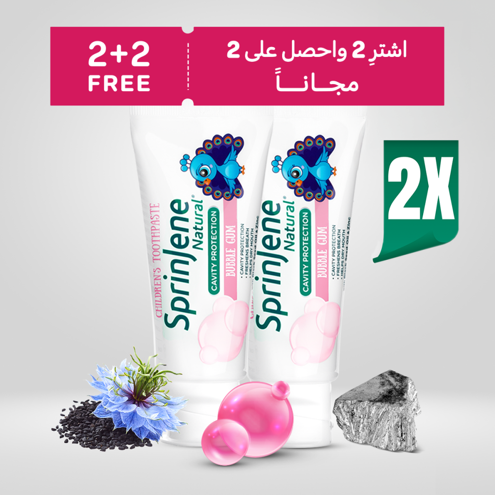 عند شرائك 2 من معجون الأطفال، تحصل على 2 إضافيين مجاناً بنفس النكهات الموجودة في العرض – نكهة العلكة.