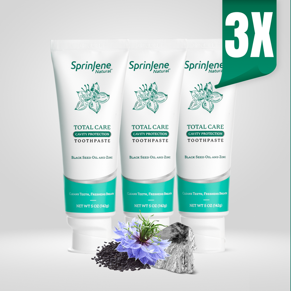 مكونات طبيعية لعناية كاملة بالأسنان من سبرينجين المزيج الحاصل على براءة اختراع من زيت الحبة السوداء والزنك يساعد في تقوية المينا ومكافحة تراكم البلاك الذي يؤدي إلى التسوس. تركيبة المعجون الطبيعية تساعد على تقليل الالتهابات وتعزيز صحة اللثة. يتميز بوجود الفلورايد لتوفير حماية فائقة من التسوس.